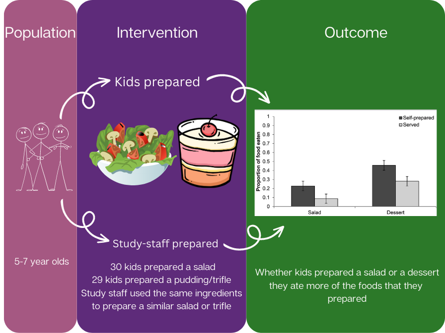 There have been many studies done looking at how getting children involved in food preparation may impact their food intake, and evidence suggests that in a research setting kids being involved in food preparation can: