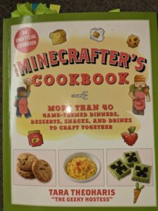 A few months ago, at a school book fair my youngest bought a Minecraft Cookbook. Until yesterday we hadn’t tried any of the recipes. So instead of going outside, we decided to use the cookbook to plan and cook a special Minecraft themed meal for my husband.