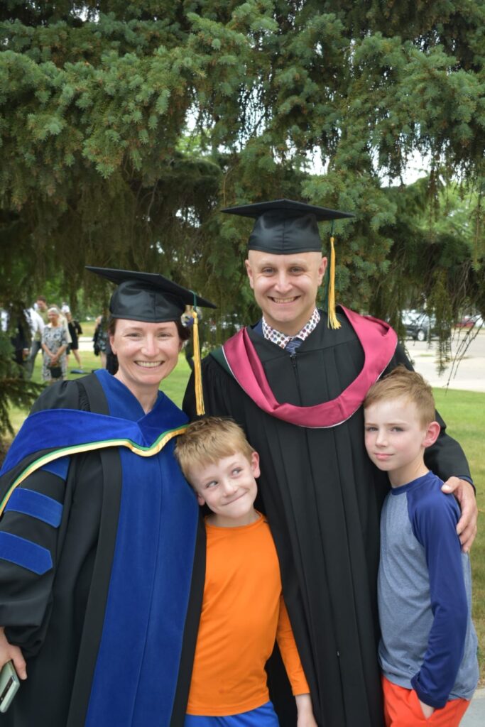 Tuesday was a big day in my family. Both my husband and I had our convocation ceremonies. Mine for my PhD in Human Nutrition and my husband for his Master’s degree. His ceremony was from 10:00-12:00, so I sat with our boys in the audience. My ceremony was from 3:00-5:00 and my husband sat with our boys in the audience.