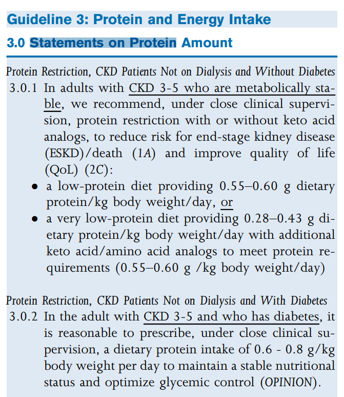My first stop to answer a question like this was to look at the 2020 Kidney Disease Outcomes Quality Initiative (KDOQI) Nutrition guidelines. Screen shot below.