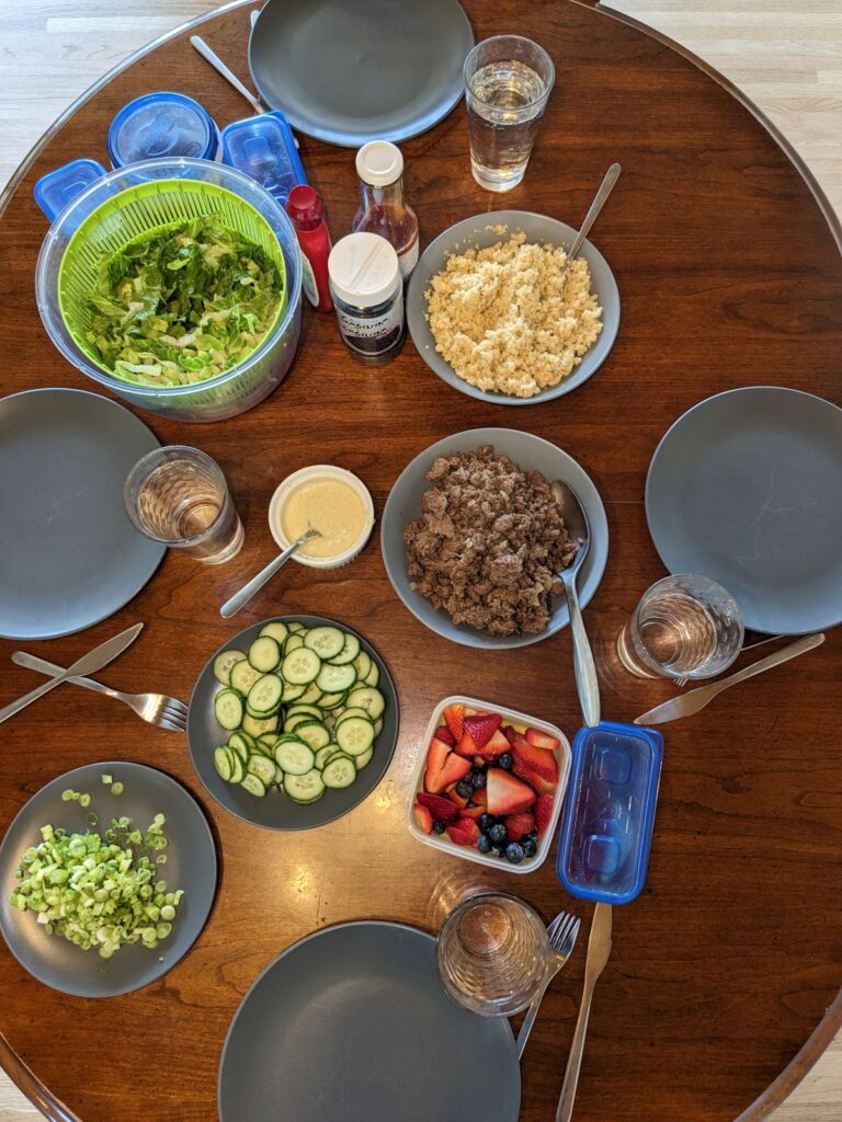 These two steps took me almost no time and helped give me a starting point for what to do dinner on Monday. If you don’t have time to meal prep – cooking some extra grains and defrosting some meat can be a great place to start. If we are aiming for a traditional “meat, potatoes, veg” kind of meal, consider yourself 2/3 of the way there after taking these two quick steps.
