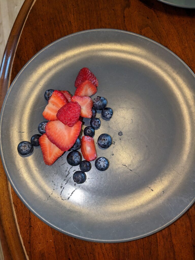 My one little guy starting with berries. I didn’t get an after shot and at this point I can’t remember what he ate!