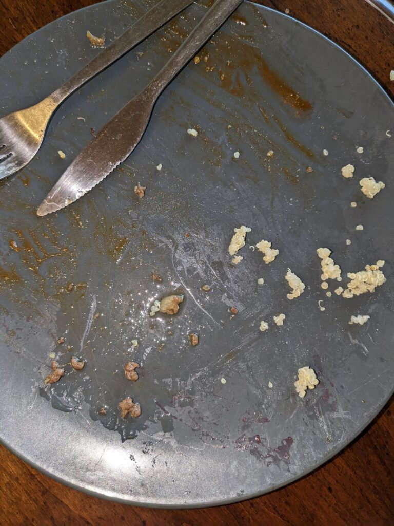 My other little guy likes the bowls and LOVES cucumbers, so while I didn’t get a before shot, I remember that he had some quinoa, beef, cucumbers and fruit. He also happened to “clean his plate” – though of course this was completely, unprompted by me!