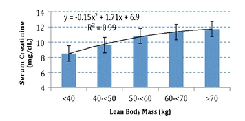 Check out the graph below from a paper published in the Journal of Cachexia, Sarcopenia and Muscle. This graph shows that in people receiving hemodialysis, as the muscle mass goes up, so too does the creatinine.