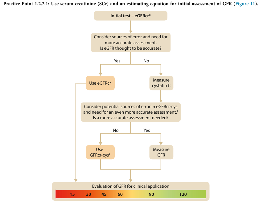 So if cystatin C is available, it may be worthwhile to use both Creatinine and Cystatin C to estimate eGFR as per this flow diagram from the 2024 KDIGO guidelines.