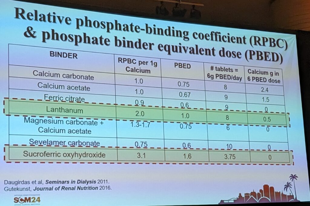 Different binders have different binding capacity. Don’t forget the calcimetics – which can also help reduce serum phosphorus levels. Typically binders are still required for those on dialysis as there is limited phosphorus removal from dialysis.